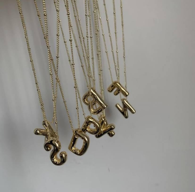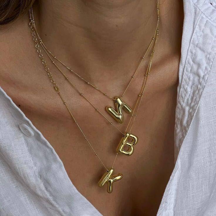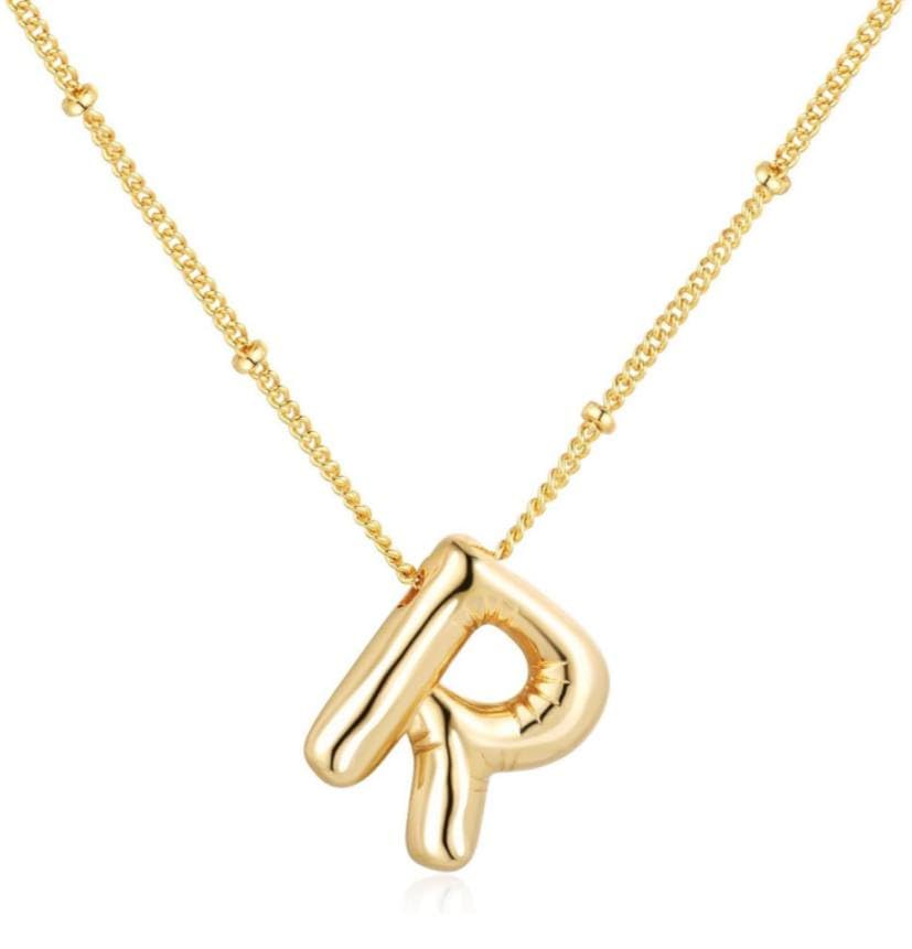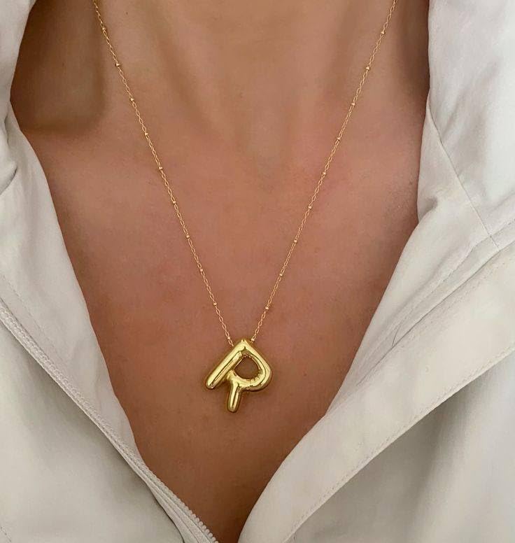 Generic - Gold Initial Letter Bubble Necklace for Women, Trendy Balloon Name Pendant Necklaces R Alphabet Birthday Gift