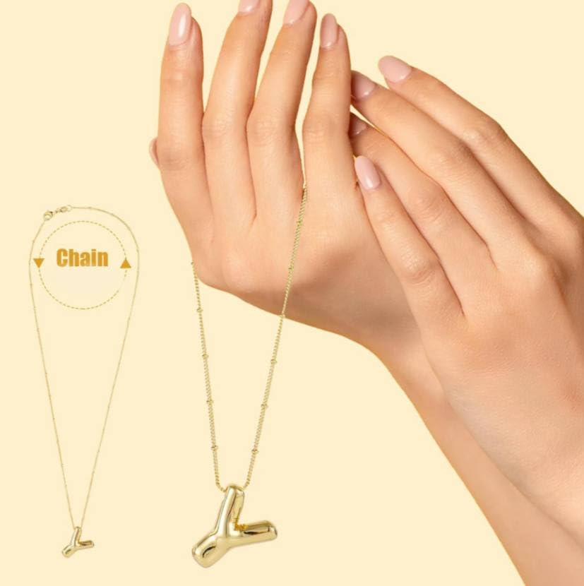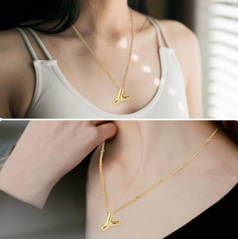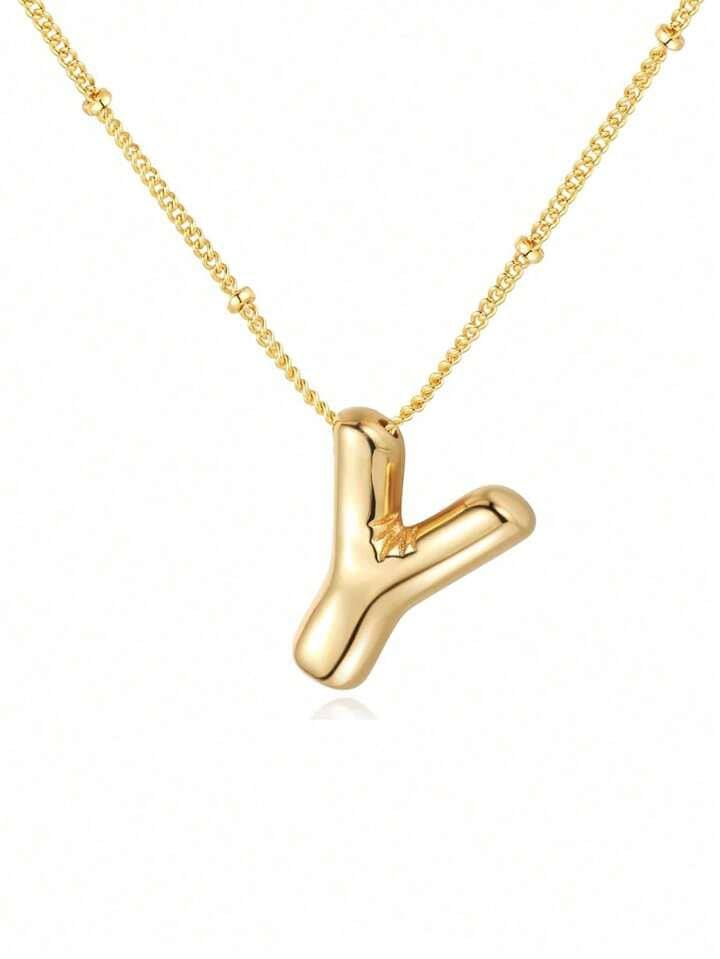 Generic - Gold Initial Letter Bubble Necklace for Women, Trendy Balloon Name Pendant Necklaces Y Alphabet Birthday Gift