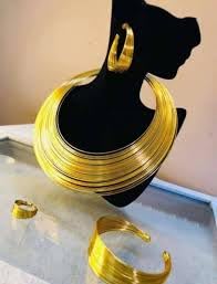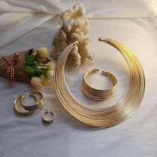 Generic - طقم شوكر ذهبي عريض متعدد الطبقات مع أقراط وسوار – تصميم ملكي فاخر للنساء طلاء فاخر مع أقراط وسوار – إطلالة ملكية جذابة