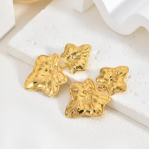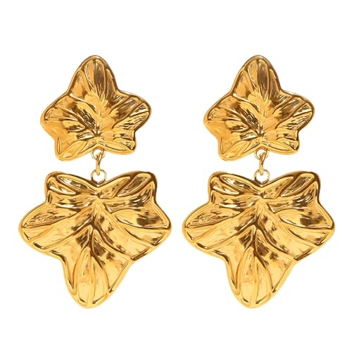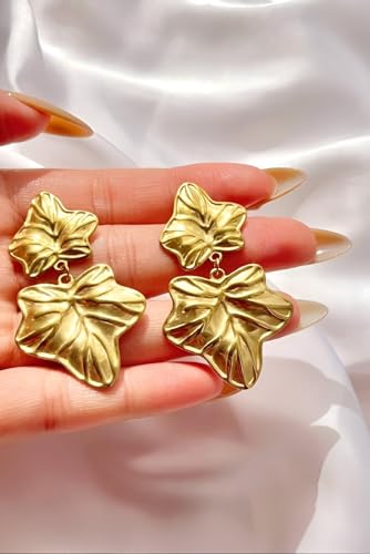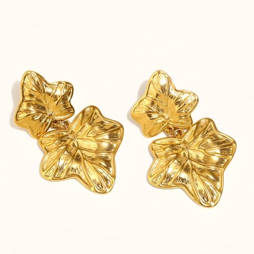 Generic - Gold Leaf Drop Earrings - Elegant Stainless Steel Jewelry Featuring Double Maple Leaf Design, 54.4mm Length, 15.1g Weight, Perfect for Sophisticated Occasions