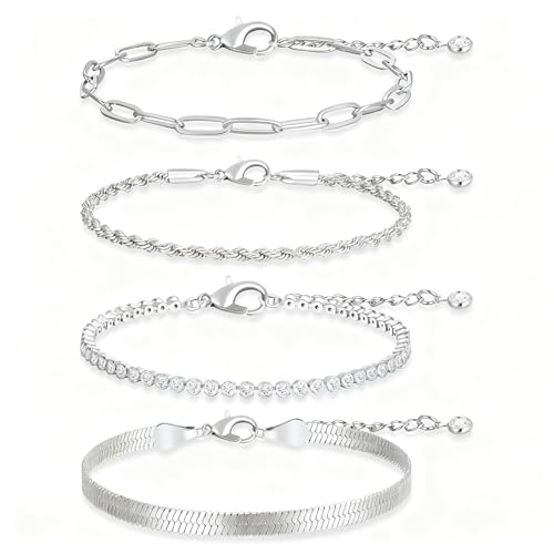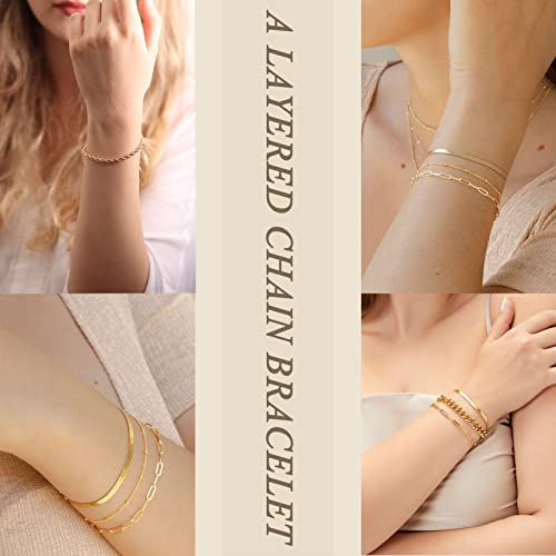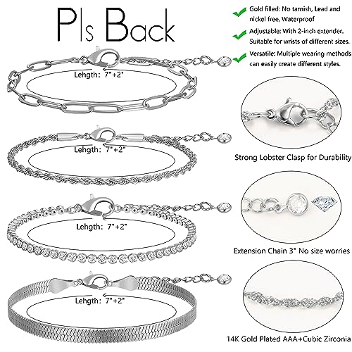 Pls Back - Gold Link Bracelets Sets for Women, 14K Gold Plated Dainty Classic Adjustable Paperclip Layered Bracelets, Fashion Simple Chain Tennis Bracelet with Zirconia, Jewelry Gifts., 7, Brass, no gemstone