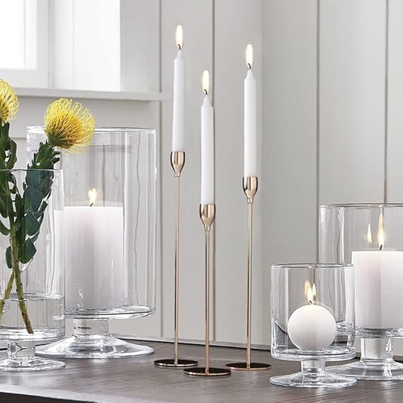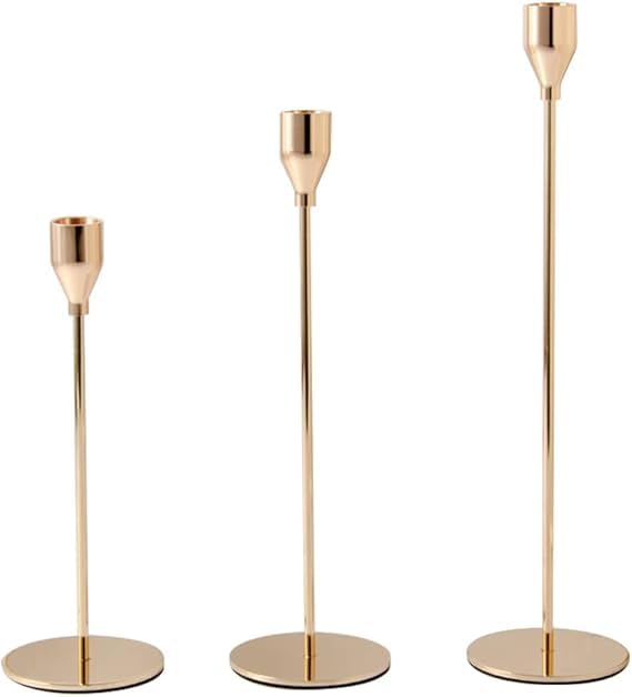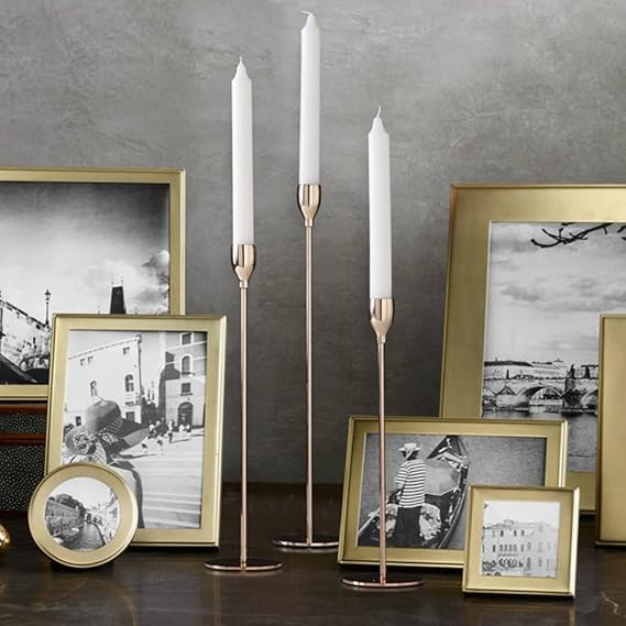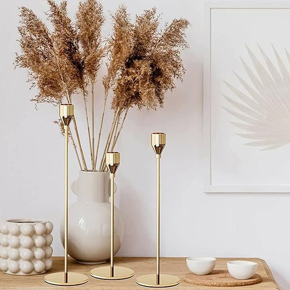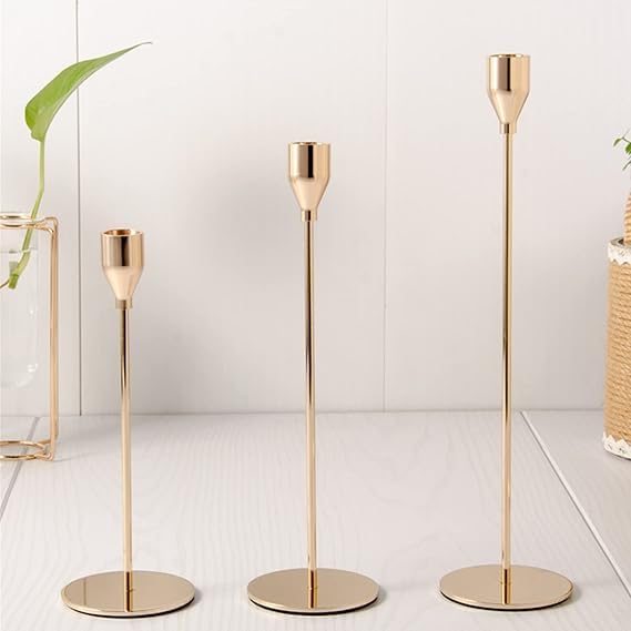 - 3 different heights, this gold candle holder can visually effect high and low wavy candle light and add a more romantic atmosphere