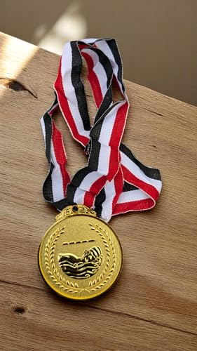 Generic - ميدالية رياضية معدنية ذهبية لأداء رياضات السباحة مقاس كبير 7 سم مع شريط متعددة الأشكال