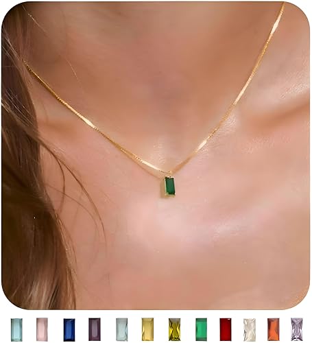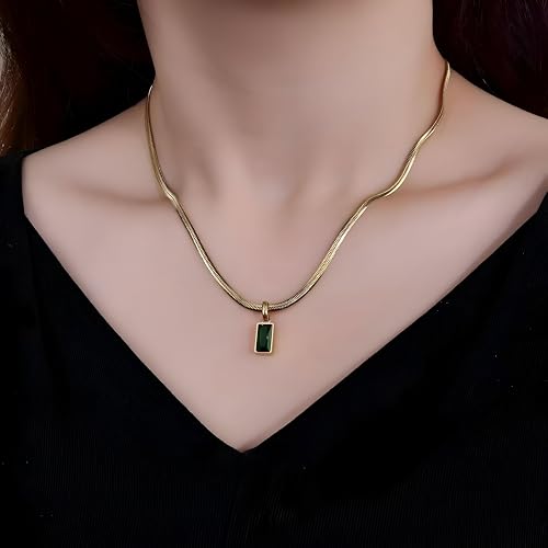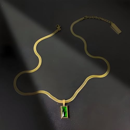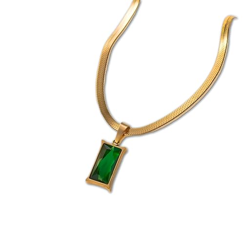 Generic - Gold necklace with an emerald stone - a luxurious 45cm gold chain with a vibrant green emerald stone, an elegant accessory for women