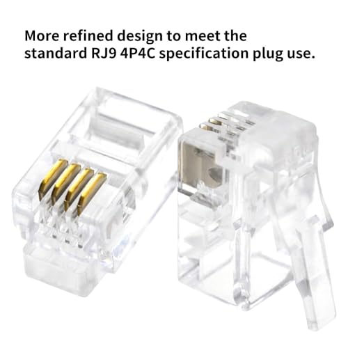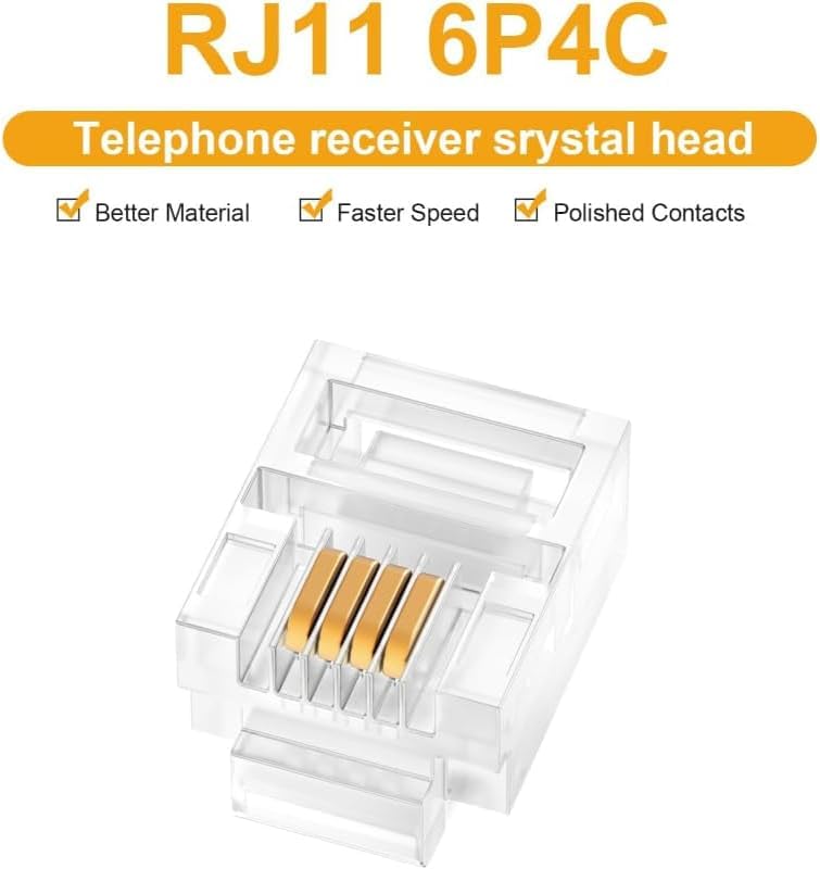 - ⚙️ وصلة بأربع دبابيس بتوافق شامل: مصممة لتوصيلات كابلات RJ11 الشائعة، لتناسب منافذ التليفون الأرضي القياسية بإحكام.