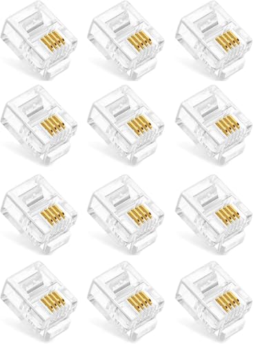 Generic - وصلة RJ11 بأربع دبابيس بطلاء ذهبي لضمان نقل صوت نقي، قابس متين مقاوم للتأكل لأسلاك كابلات التليفون الأرضي وخطوط الفاكس وتوصيلات الخط الأرضي لضمان ثبات في الإشارة، مقاس كبير، عبوة من 20 قطعة