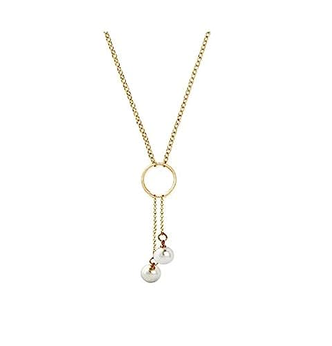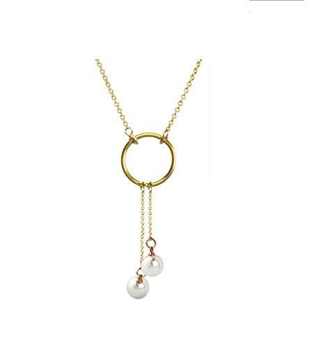Other - قلادة مطلية بالذهب على شكل دائرة مع قلادتين من الخرز المتلألئ للنساء