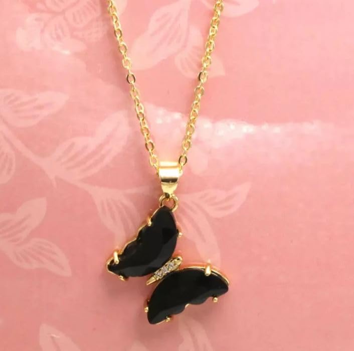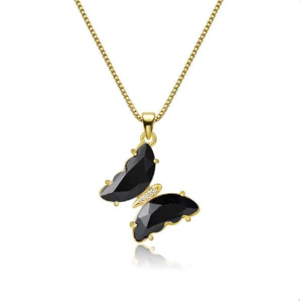 Generic - Gold Plated Crystal Butterfly Necklace, Glass Butterfly Necklace, Butterfly Pendant Charm Necklace, Gift for Women