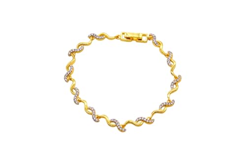 Generic - Gold Plated Diamond-Studded Wavy Links Women's Bracelet with Clasp Closure, Free Size - Gold