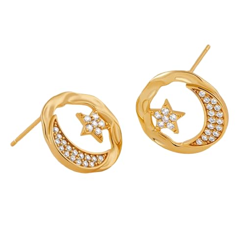 Generic - حلقان متدلية مطلية بالذهب بتصميم نجمة دائرية، حلقان مزينة بلؤلؤ أبيض ولمسات كريستالية بأسلوب بينك ولمسة نهائية لامعة للنساء، M39
