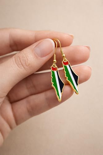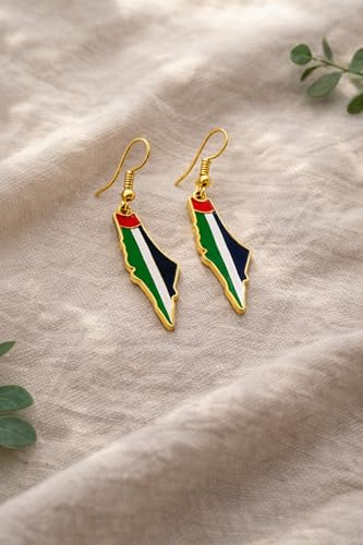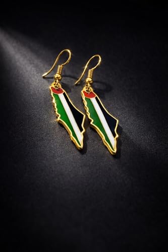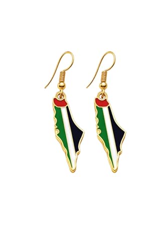 3 Diamonds - اقراط متدلية على شكل خريطة مطلية بالذهب مطلية بالذهب، مجوهرات عصرية خفيفة الوزن للنساء