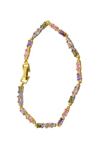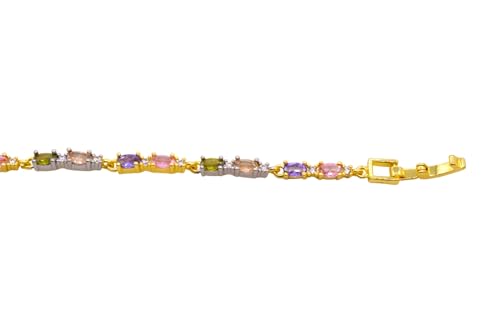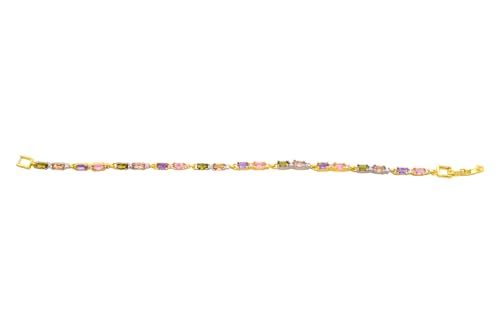 Generic - Gold Plated Gemstones Accents Women's Bracelet with Clasp Closure, Free Size - Gold
