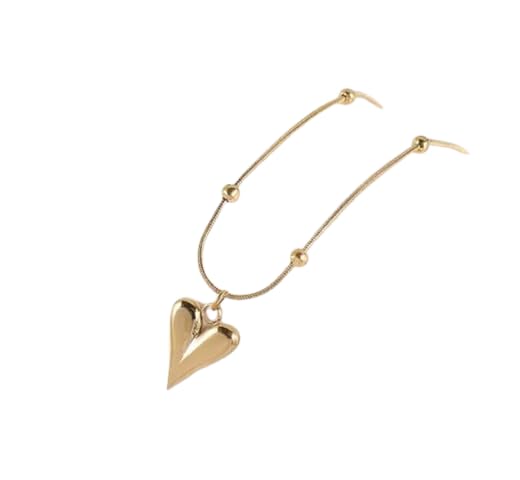 Generic - Gold-Plated Heart Pendant Necklace, 45 cm Cable Chain, Crystal Stones, Vintage Style