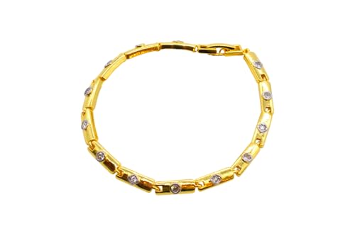 Generic - Gold Plated Rhinestones Accents Links Women's Bracelet with Clasp Closure, Free Size - Gold