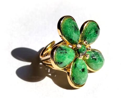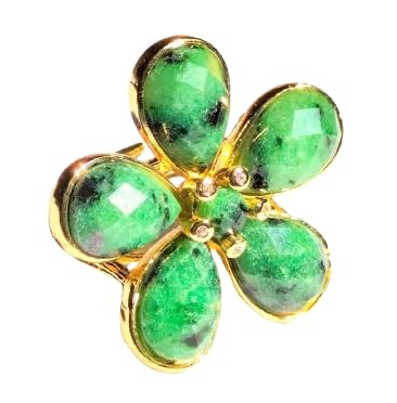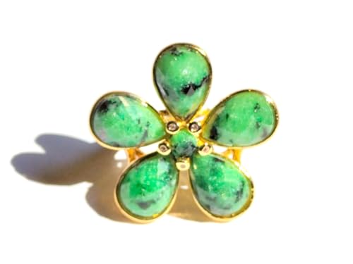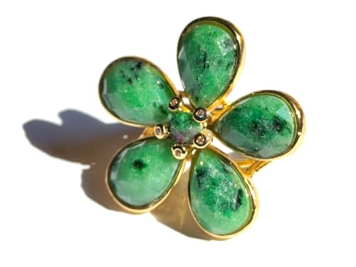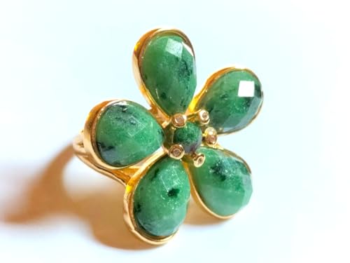 Generic - مطلي بالذهب خاتم به 6 قطع من احجار الزمرد الأخضر الطبيعي الاصلي تماما - مقاس مفتوح مناسب للجميع، للنساء