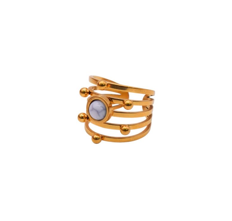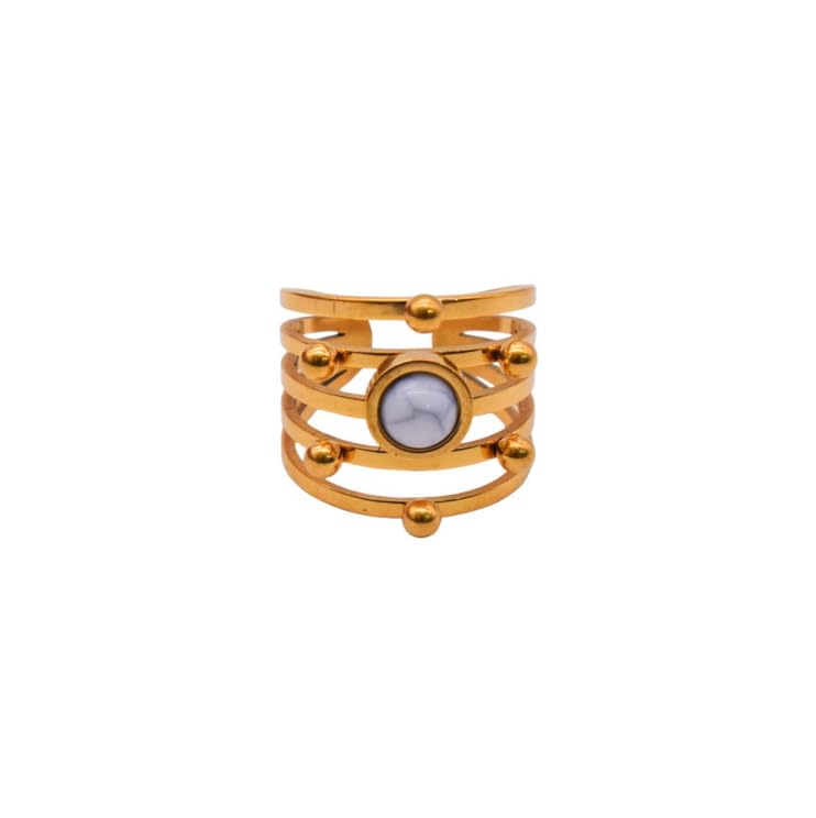 Generic - Gold Plated Ring With Five Layers & Circle Stone Designn For Girls - Gold White