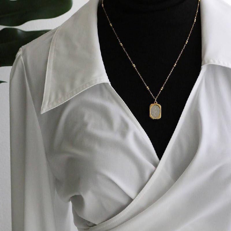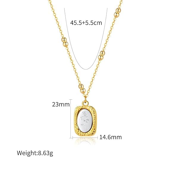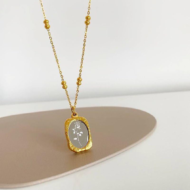 Generic - قلادة مرآة مطلية بالذهب على شكل وردة | فولاذ مقاوم للصدأ | قلادة أنيقة للنساء والفتيات | مجوهرات منقوشة بالورود | إكسسوار أنيق وبسيط