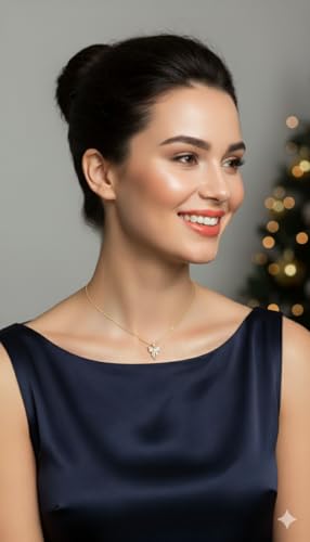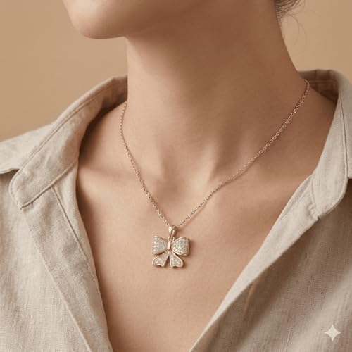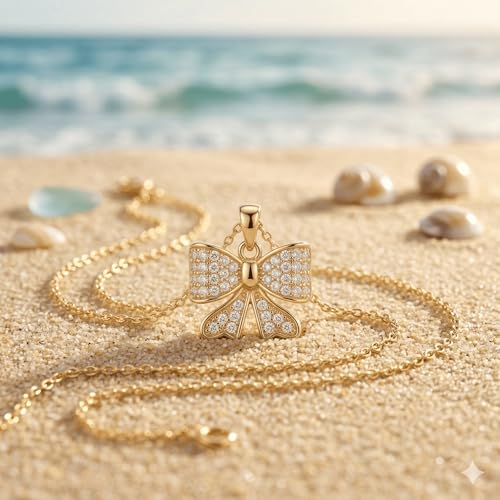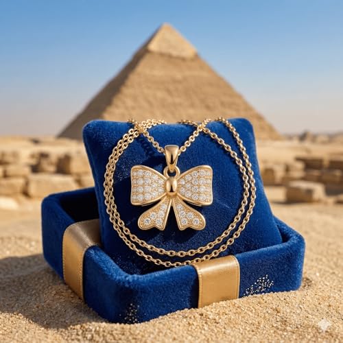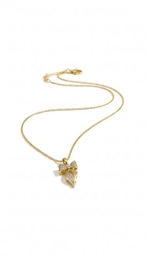Generic - قلادة فيونكة ناعمة مطلية بالذهب | عقد مرصع بالكريستال بتصميم أنثوي رومانسي | إكسسوار نسائي أنيق من الاستانلس ستيل المقاوم للماء والصدأ ومضاد للحساسية