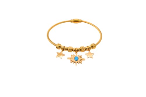 Generic - Gold Plated Stainless Steel Charms Bracelet With Stars Designn For Girls - Gold Blue