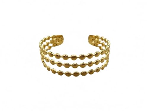 Generic - سوار من الستانلس ستيل المطلي بالذهب بثلاث صفوف من الخرز، تصميم مفتوح قابل للتعديل، حلقات خرز دائرية متعددة الطبقات، لمسة نهائية مصقولة نسيجية، مجوهرات مميزة بسيطة للنساء