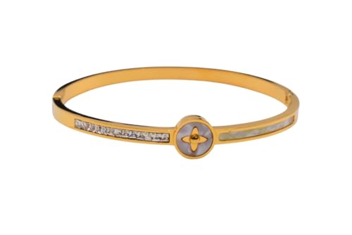 Generic - Gold Plated Wide Bracelet With Special Designn For Girls - Gold Grey - 867