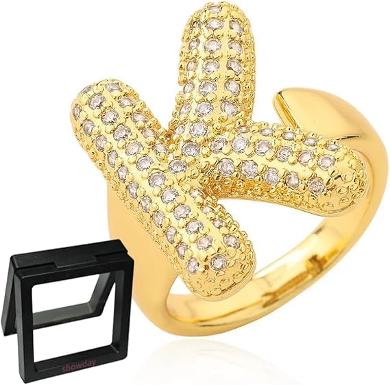 Generic - خواتم ذهبية للنساء خواتم ذهبية مكتنزة على شكل فقاعة بحروف من A-Z، خواتم قابلة للتعديل للنساء، خاتم بحروف مفتوحة من الزركون مناسب كهدايا للنساء، خواتم فقاعية، خاتم حروف بالون (K)
