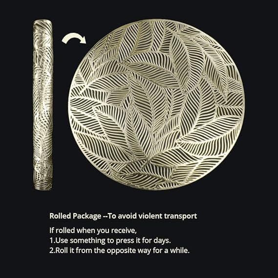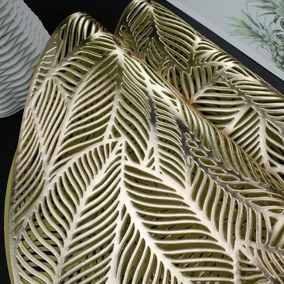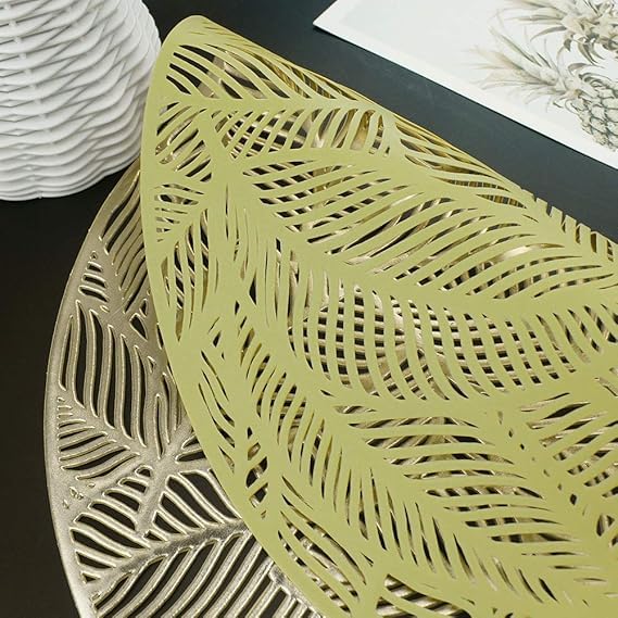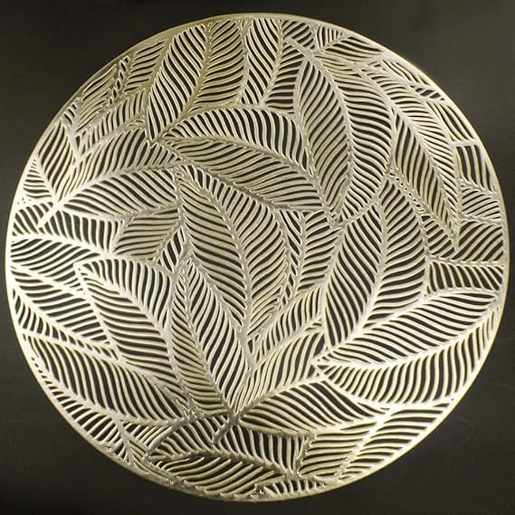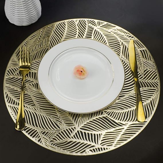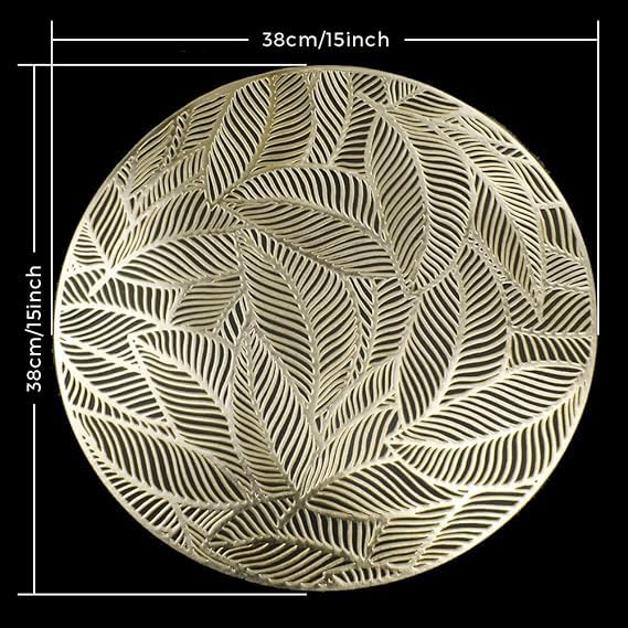 Generic - مفارش دائرية ذهبية لطاولة العشاء، مجموعة من 6 مفارش مجوفة مضغوطة من الفينيل بتصميم اوراق شجر لامعة لطاولة الزفاف