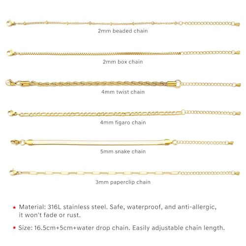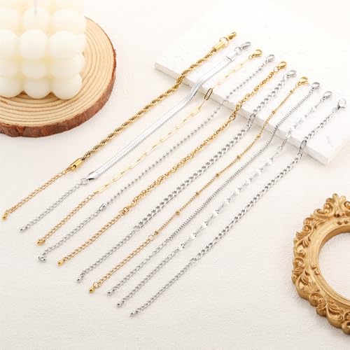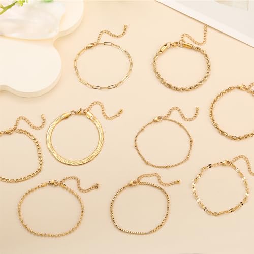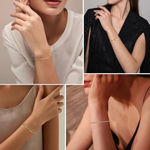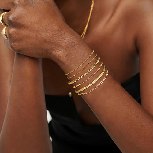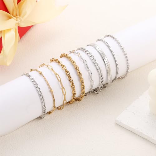 SKQIR - Gold Silver Bracelets for Women Waterproof Jewelry Sets Trendy Thin Dainty Stackable Cuban Link Paperclip Chain Bracelet Pack Fashion Accessories Gifts for Women
