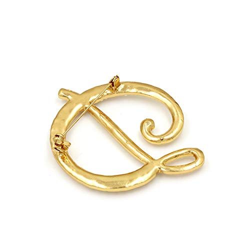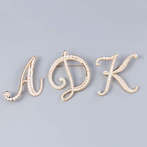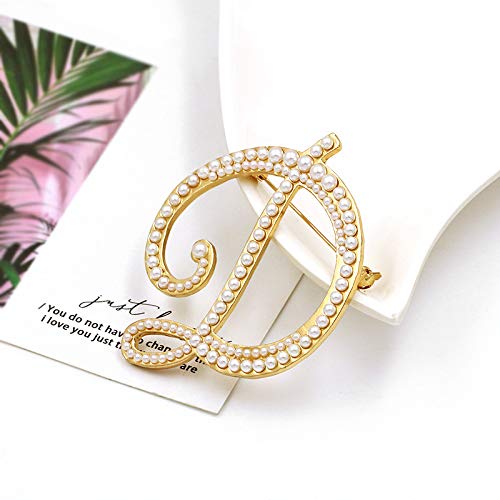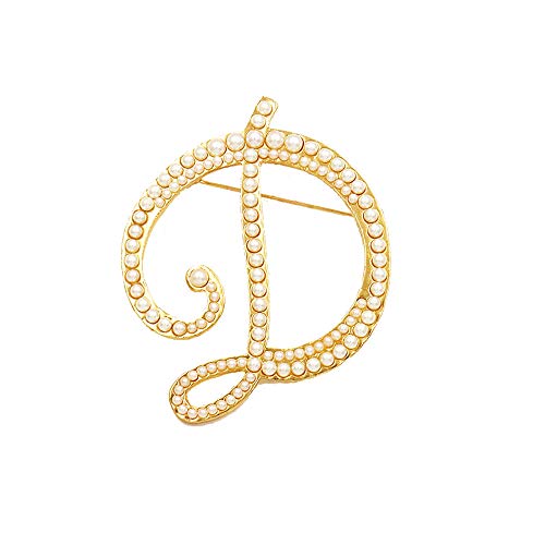 BELUCKIN - Gold Simulated Pearl Initial Letter Alphabet Brooches Pin Women Gifts Jewelry (D)