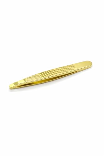 Generic - Gold Slant Tip Stainless Steel Tweezers for Eyebrow Shaping and Facial Hair Removal, Precision Brow Plucker with Non Slip Grip Handle for Professional and Home Grooming