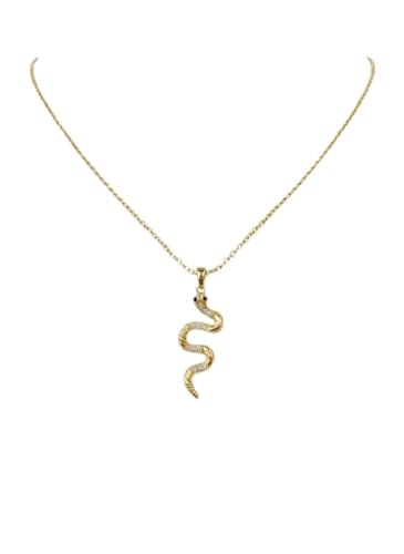 Generic - قلادة ذهبية بدلاية على شكل ثعبان مرصعة بالكريستال، تصميم ثعبان متموج، سلسلة رقيقة