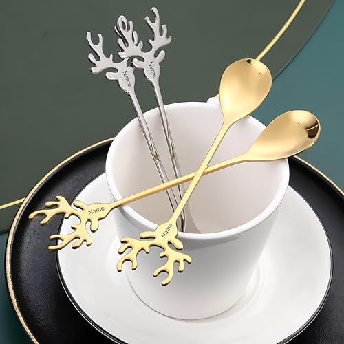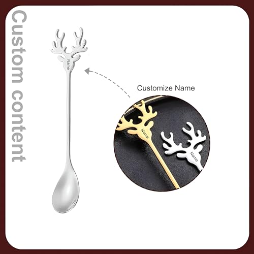 - Personalized Christmas Deer Coffee Spoons bring a festive touch to any holiday gathering. These spoons are designed for customization, allowing you to engrave individual or family names on each spoon, making them perfect for family reunions and Christmas celebrations in 2022. When dessert time rolls around, having a personalized spoon makes each family member feel special and appreciated, cultivating a warm atmosphere filled with love and thoughtfulness.