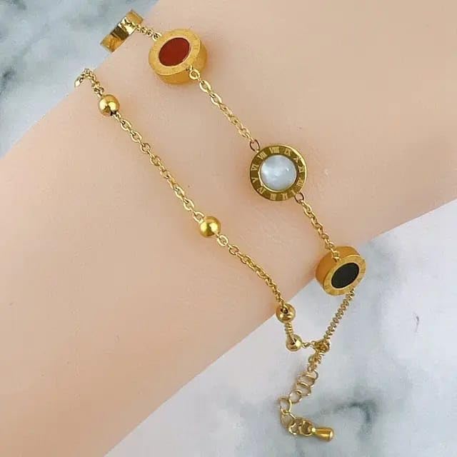 Generic - Gold Stainless Steel Chain Bracelet for Women Black Rhinestone Bracelet Suitable for Women's