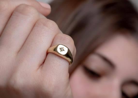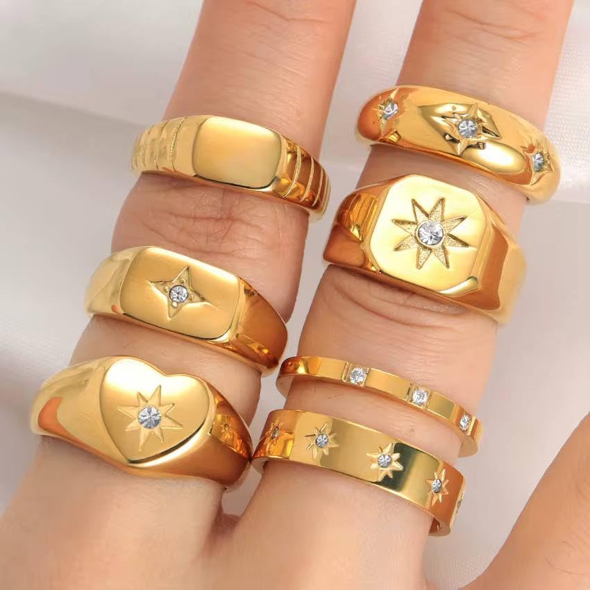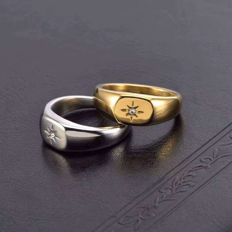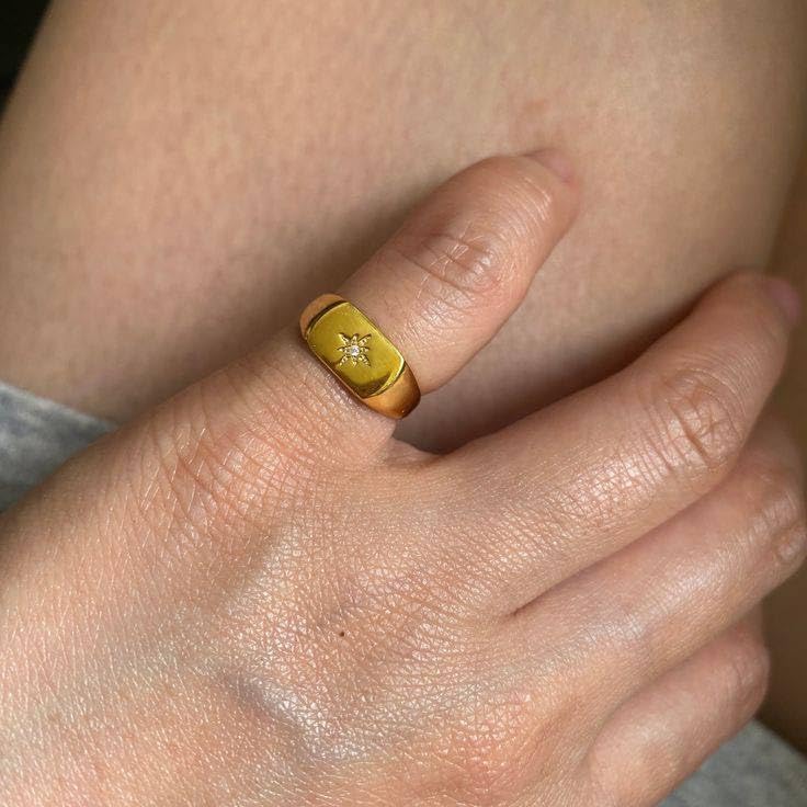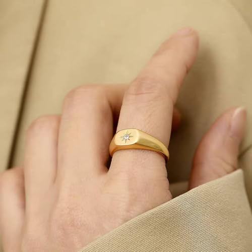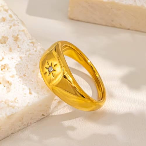 Generic - Gold Star Ring for Women – Elegant Minimalist Signet Style with Crystal Center – Classic Polished Band Jewelry