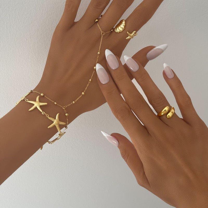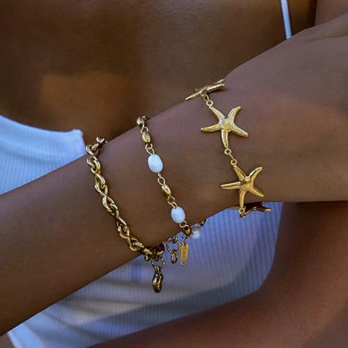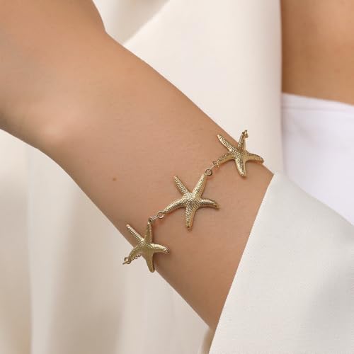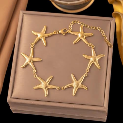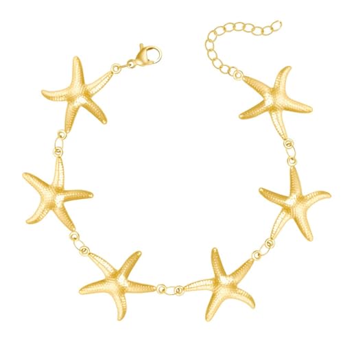 Generic - سوار ذهبي بدلاية على شكل نجم البحر للنساء - مجوهرات مستوحاة من المحيط قابلة للتعديل مع دلايات متعددة من نجوم البحر، اكسسوار عصري للشاطئ الصيفي، سوار خفيف الوزن مطلي بالذهب، هدية مثالية لها