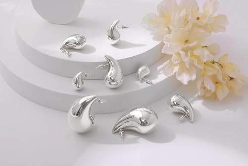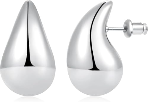 Generic - Gold Teardrop Earrings Dupes for Women, Chunky Gold PLATED Earrings for Women with, 14K Gold PLATED Tear Drop Earrings for Women, 25 mm, Brass Silver, No Gemstone