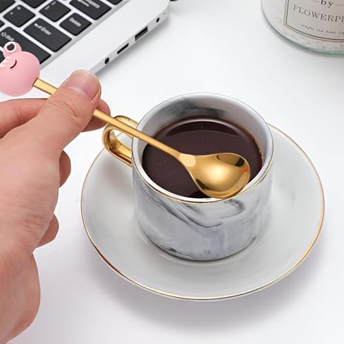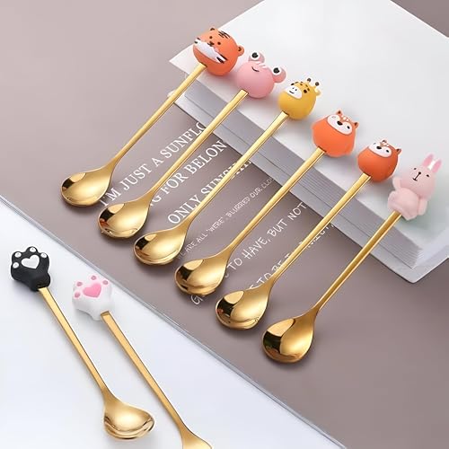 Generic - ملاعق حيوانات ذهبية - مجموعة انيقة من 6 قطع من ملاعق الحلوى المصنوعة من الستانلس ستيل بمقبض طويل مزينة بتصميمات حيوانات لطيفة، مثالية لتقديم الايس كريم والكعك والفواكه والقهوة.
