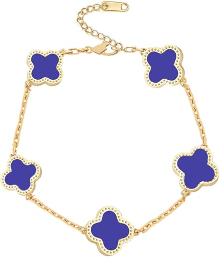 Generic - Gold-Tone Clover Charm Bracelet with Blue Enamel, 19 cm Length stainless steel barcelet for women