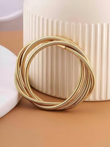 Generic - Gold-Tone Multi-Loop Coil Bangle Set - Comfortable and Durable Jewelry Piece for Casual and Formal Outfits
