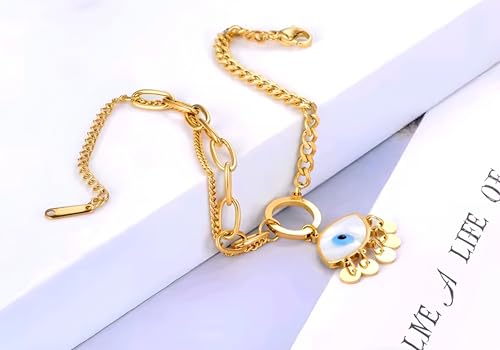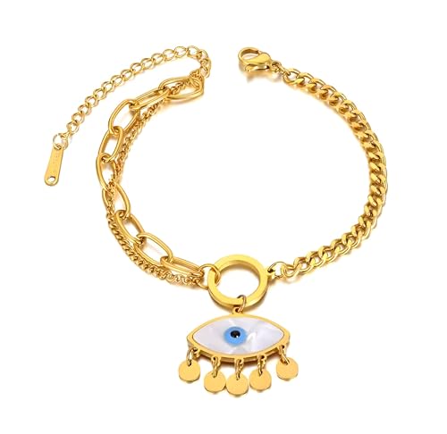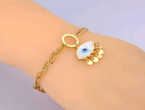 Generic - Gold Tone Stainless Steel Bracelet with Evil Eye Pendant, Gold Plated Metal Chain, Fashion Design for Women and Girls