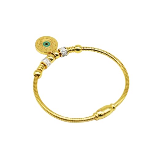 Generic - Gold-Toned Bracelet with Evil Eye Charm, Crystals