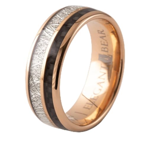 Elegant Bear - خاتم ذهبي من كربيد التنجستين مرصع بالالياف الكربونية السوداء والنيزك الاصطناعية A132