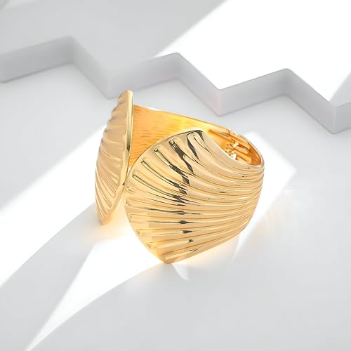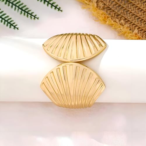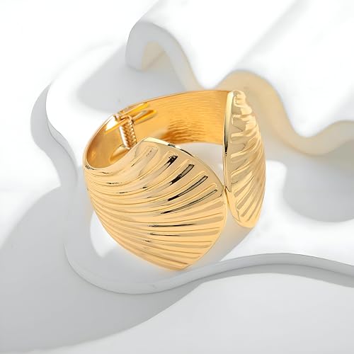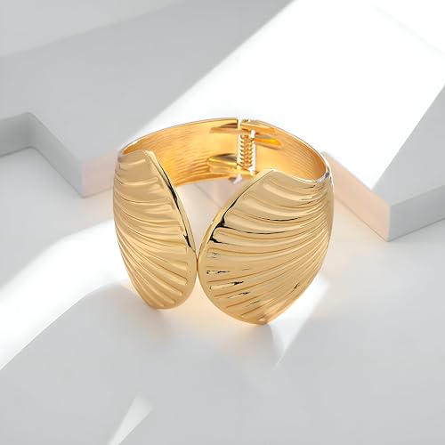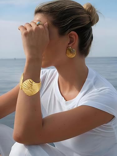 Generic - Gold Wave Shell Bracelet Set - Wide, Hammered Bands with Sea-Inspired Details, Designed for Boho Women Seeking Summer Elegance