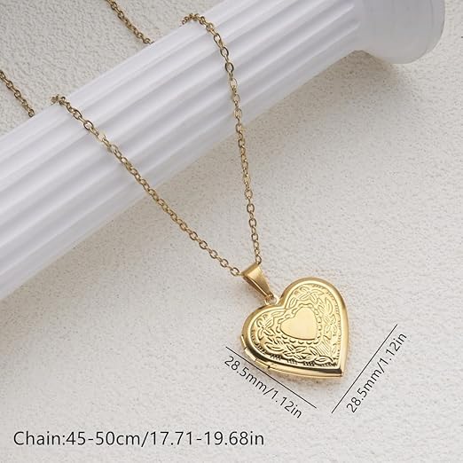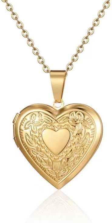 fashion mania - قلادة ذهبية للنساء بنمط قلب دائري مفتوح واطار صور وصندوق صور هدية جميلة وانيقة مناسبة للبنات
