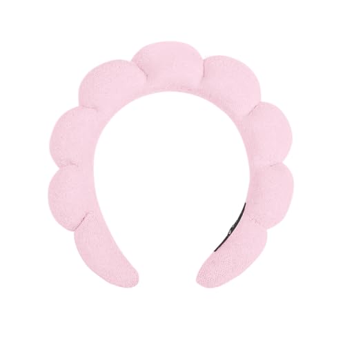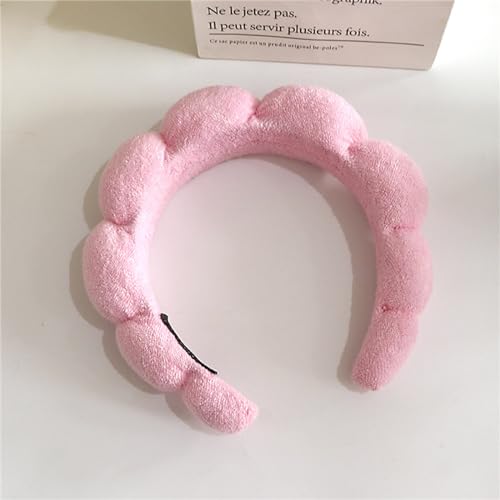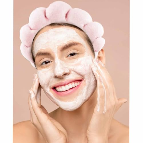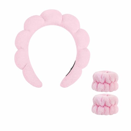 Golden Apple - جولدن ابل مجموعة شريط رأس وسوار معصم من الصوف الناعم لغسل الوجه والمنتجعات الصحية والمكياج (بينك)
