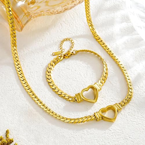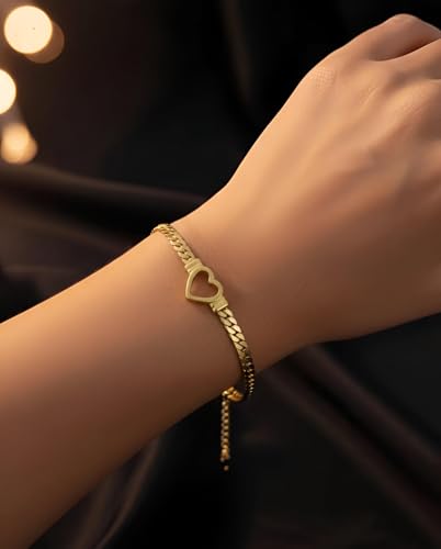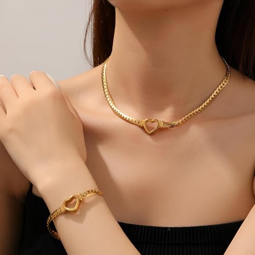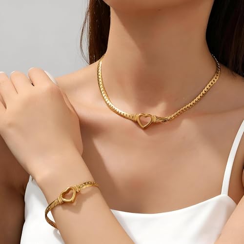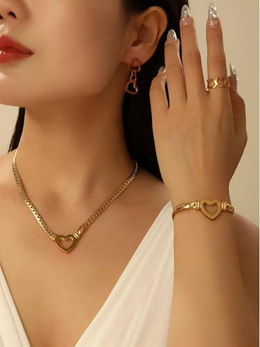 Generic - مجموعة ذهبية اللون - قلادة أنيقة على شكل قلب وسوار مزدوج مع تصميم حلقة متشابكة وقفل قابل للتعديل مضاد للصدأ، مجوهرات تكميلية لرؤية مرنة من النهار الى المساء
