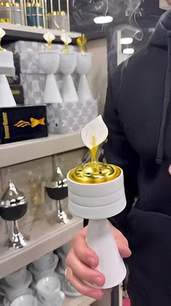 - يشع التصميم المجوف الذهبي للمبخرة بسحر رائع وأنيق، مما يضيف إحساسًا بالرقي إلى أي مساحة. تضفي تفاصيلها المعقدة ولمسة نهائية لامعة جاذبية بصرية بينما تخدم غرضًا عمليًا، مما يجعلها ليست مجرد أداة عملية ولكن أيضًا قطعة مركزية ترفع من الديكور الداخلي دون عناء.