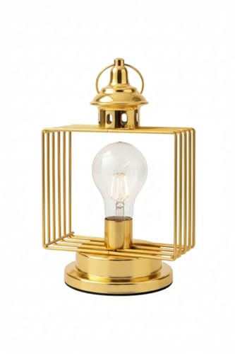 Generic - فانوس ديكور ذهبي من المعدن بإضاءة ليد دافئة تصميم عصري للديكور المنزلي والبلكونات ومائدة الإفطار وديكور رمضان ولمسات فنية راقية