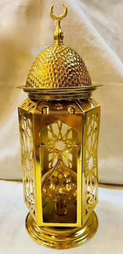 - Traditional luxury design: a golden decorative lantern with a crescent on the top, featuring a beautiful traditional Muslim pattern that adds an elegant touch to your home decor
