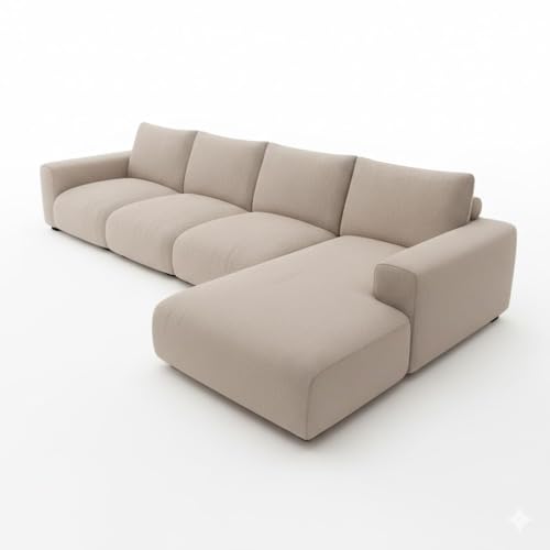 - التصميم والشكل: ركنة عصرية على شكل حرف L بتصميم مودرن أنيق باللون البيج، تتكون من قطعتين مع شيزلونج بطول 200 سم لتوفير مساحة جلوس واسعة ومريحة